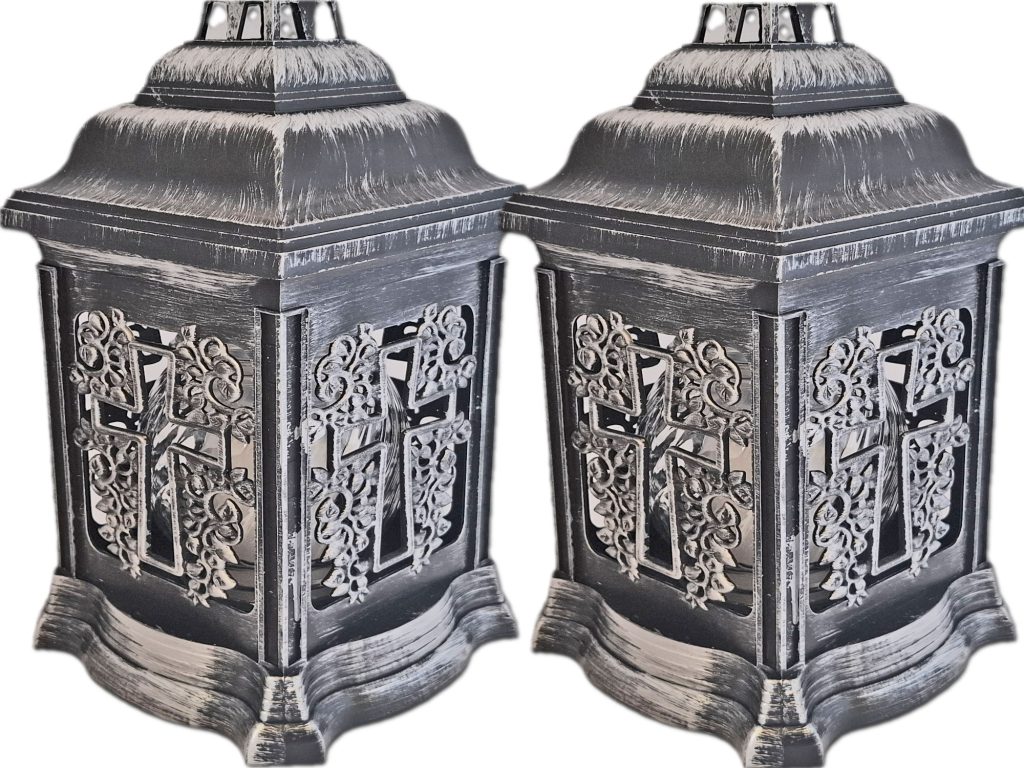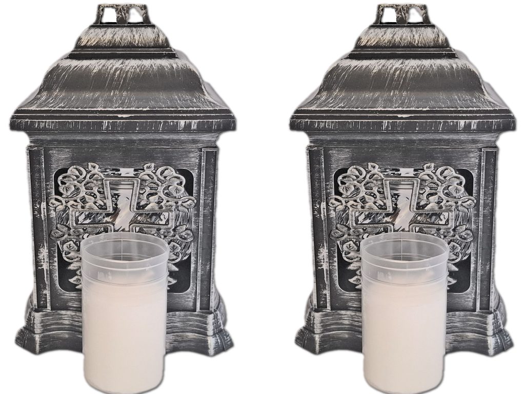 ZNICZ ZNICZE LAMPION NA GRÓB ZESTAW 2 SZTUKI 2070 KRZYŻ SREBRO +WKŁAD