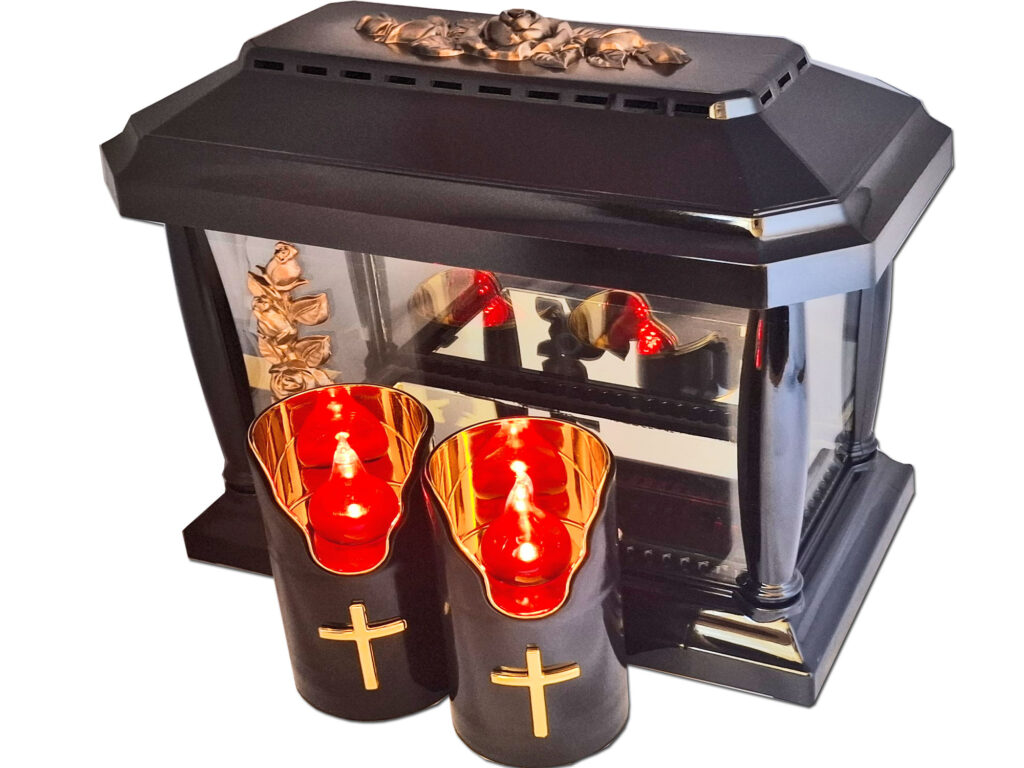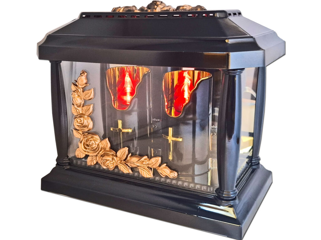 Znicz Panteon czarny róża złoto+2 świece led