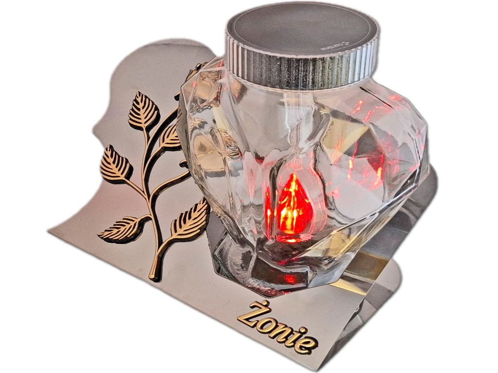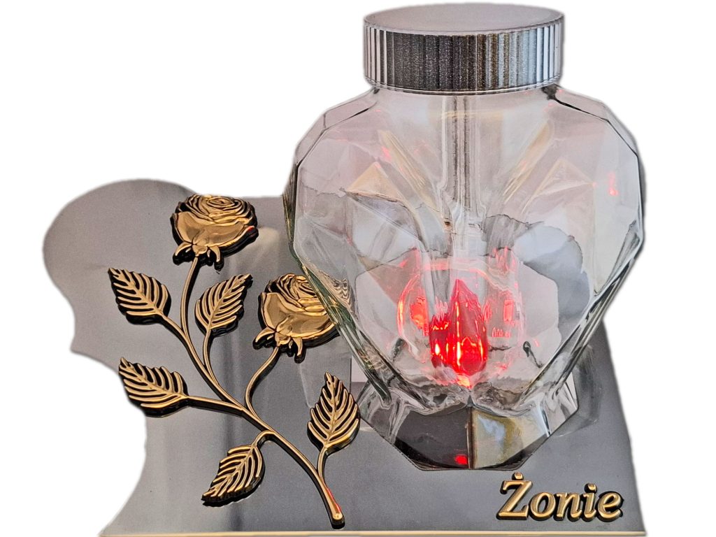 - Znicz stoi na metalowej podstawie,jest cały szklany w formie serca