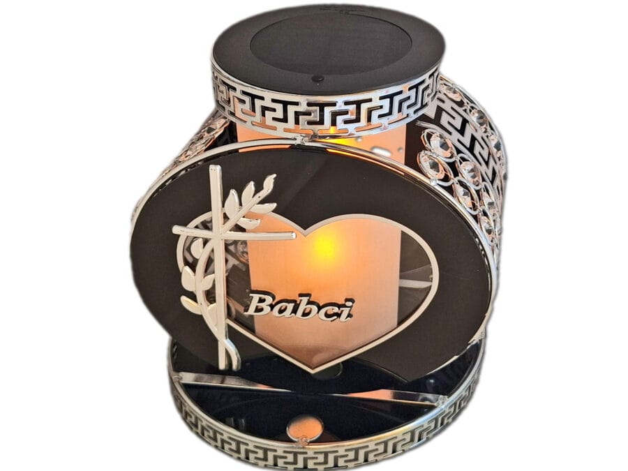 BABCIA BABCI SOLARNY ZNICZ LAMPION FOTOWOLTAICZNY NA GRÓB SERCE SKOS SREBRO