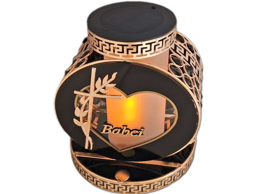 BABCIA BABCI ZNICZ LAMPION KOŁO RTN GŁADKI CZARNY+ŚWIECA LED