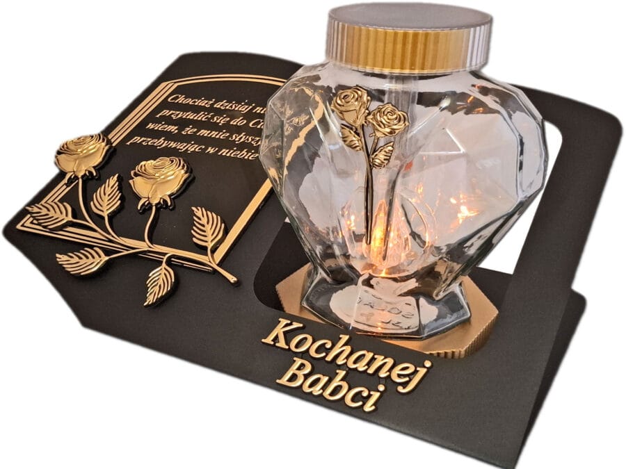 BABCIA BABCI SOLARNY ZNICZ LAMPION NA GRÓB SERCE SZKŁO ZŁOT SKOS SENTENCJA