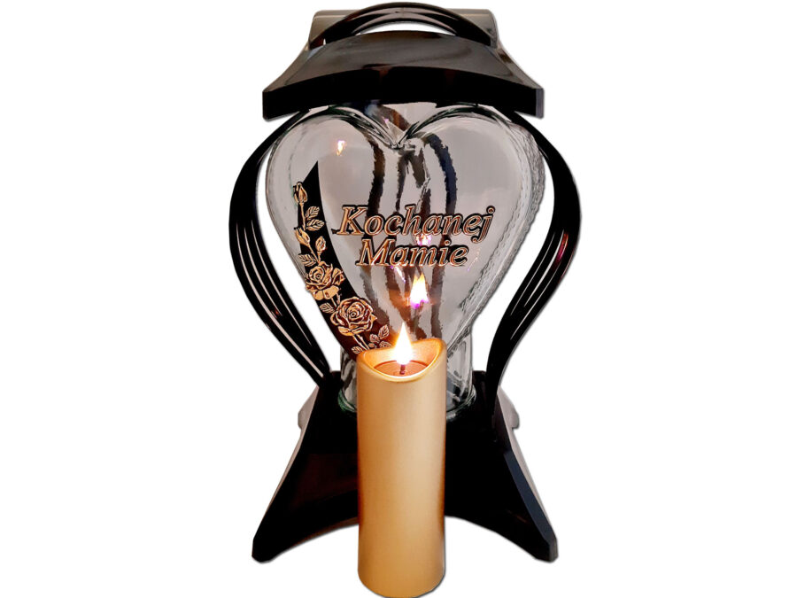 MAMA MAMIE ZNICZ LAMPION SERCE ZŁOTO NA GRÓB SOLARNY FOTOWOLTAICZNY