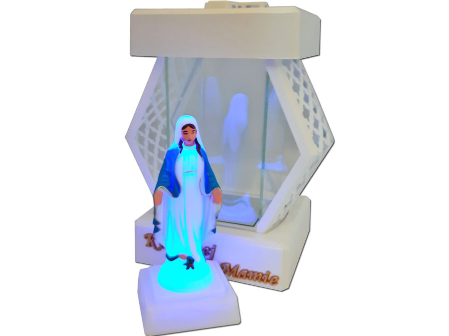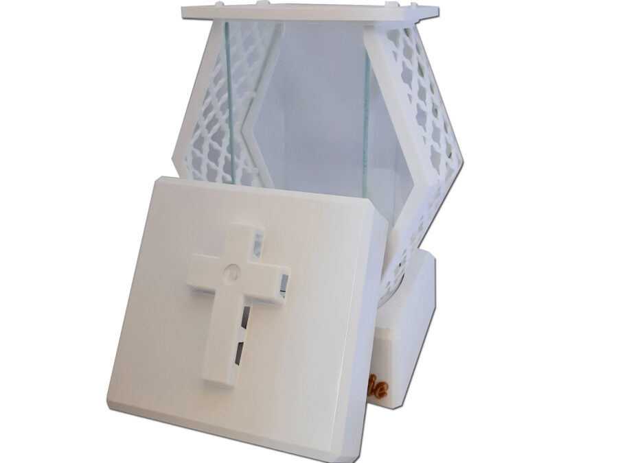 MAMA MAMIE ZNICZ ZNICZE LAMPION NA GRÓB DMT KARO GŁADKI BIAŁY+FIGURKA LED
