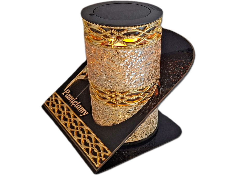 PAMIĘTAMY SOLAR SOLARNY FOTOWOLTAICZNY ZNICZ LAMPION AKR TUBA ZŁOTO LUSTRZANE