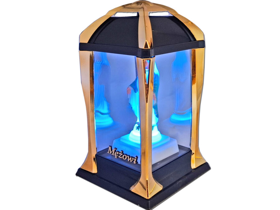 MĄŻ MĘŻOWI ZNICZ ZNICZE LAMPION LATARNIA NA GRÓB KPL ZŁOTO+FIGURKA LED