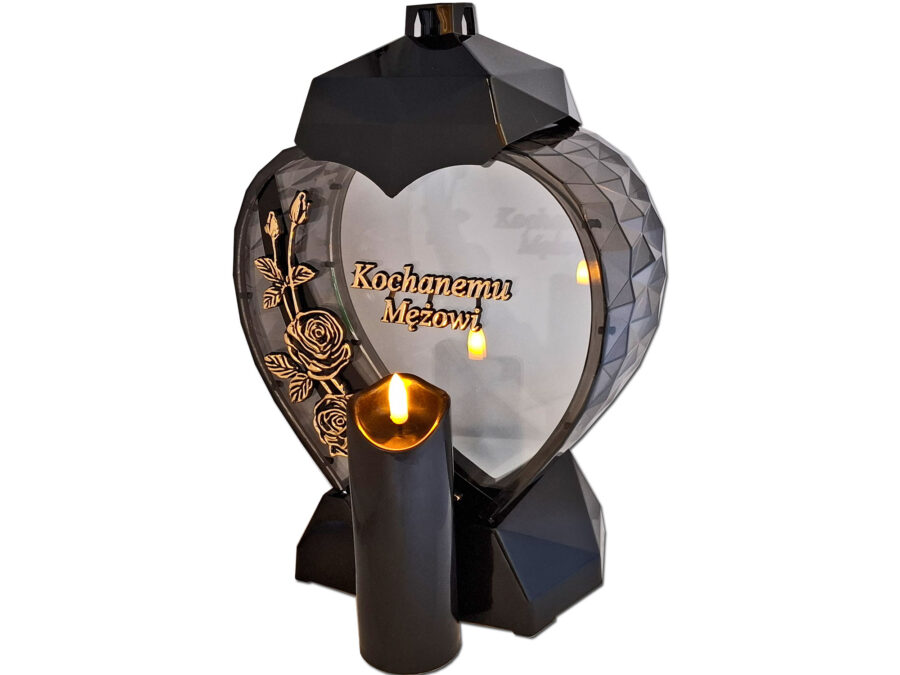 MĄŻ MĘŻOWI ZNICZ LAMPION SERCE ZŁOTO NA GRÓB SOLARNY FOTOWOLTAICZNY