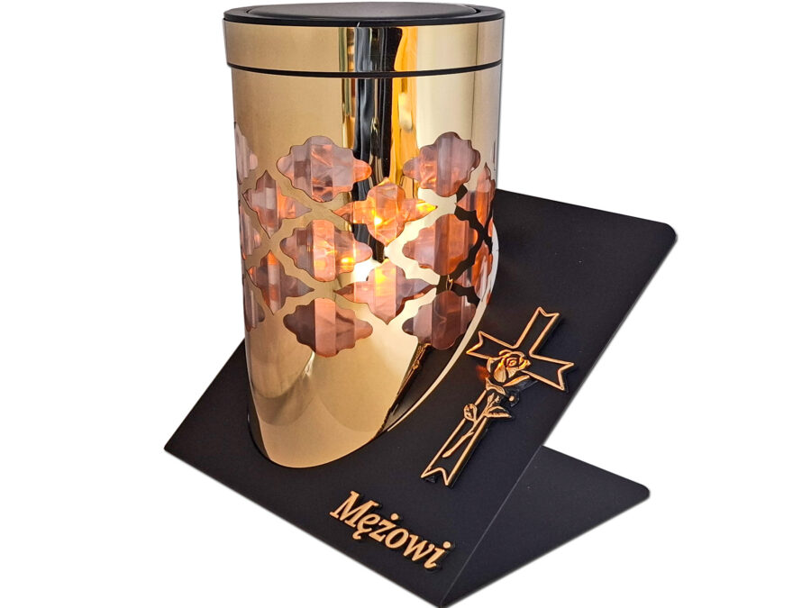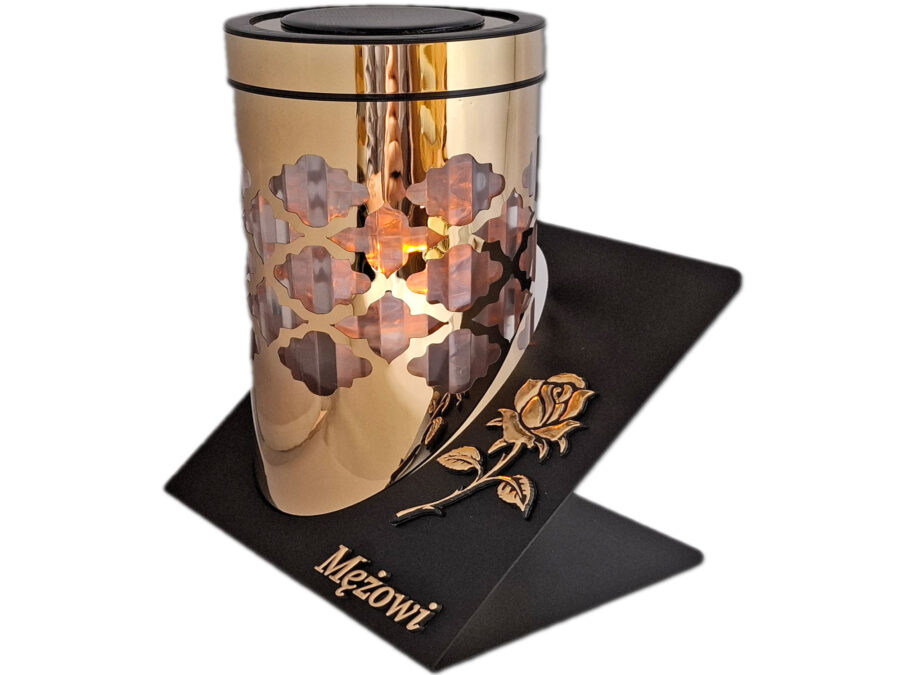 MĄŻ MĘŻOWI ZNICZ LAMPION SOLARNY SOLAR FOTOWOLTAICZNY TUBA RÓŻA ZŁOTO