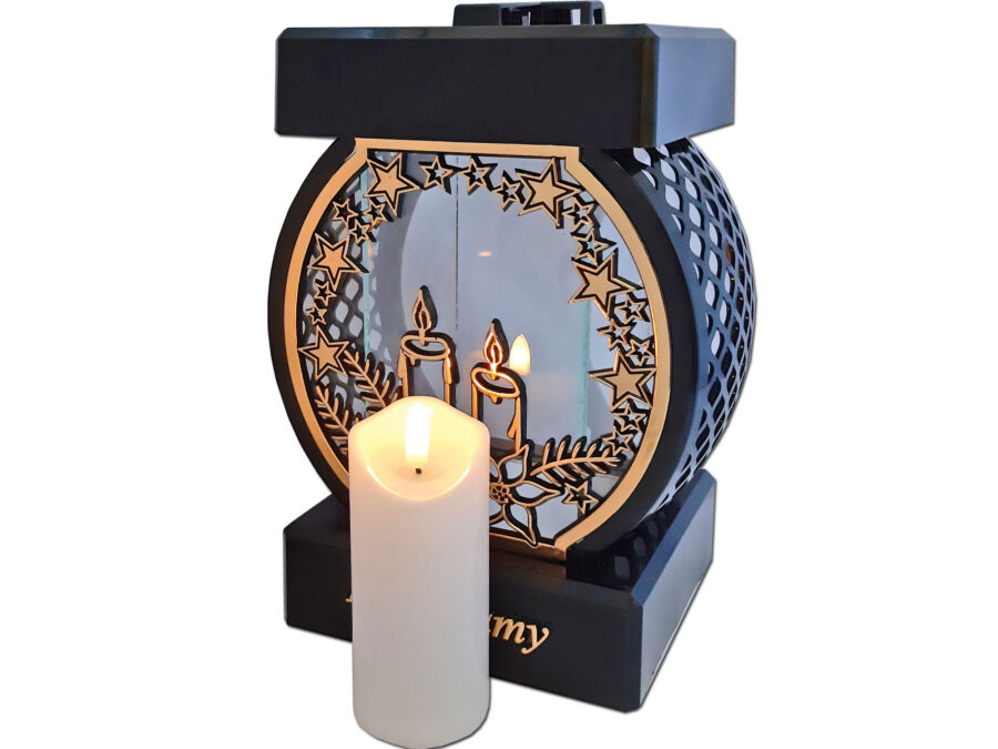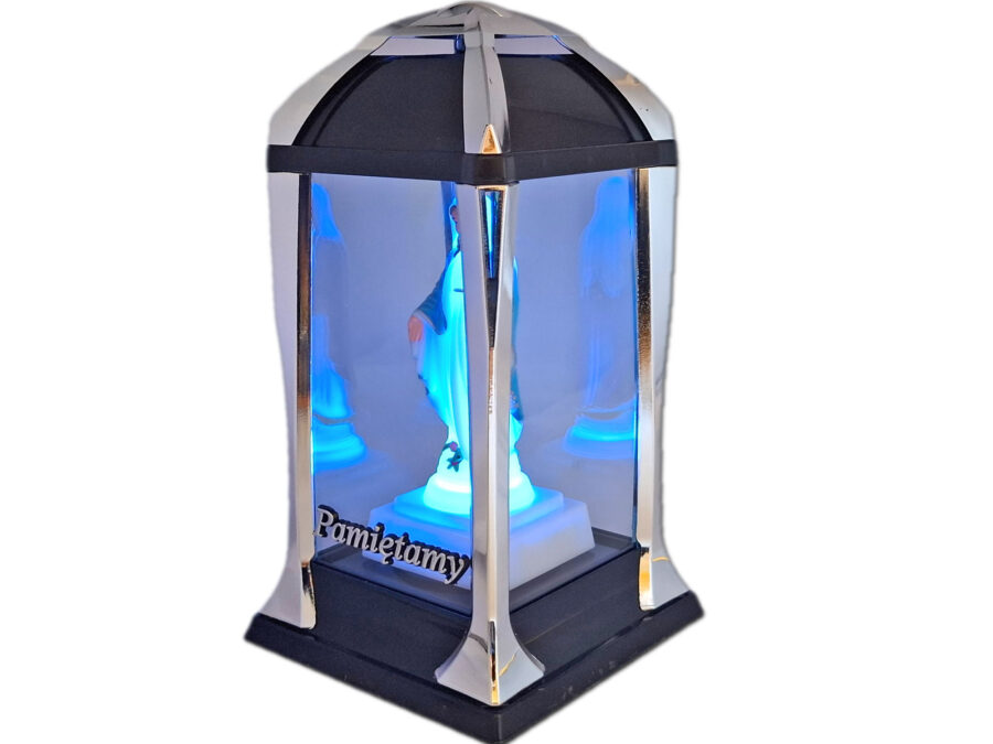 PAMIĘTAMY ZNICZ ZNICZE LAMPION LATARNIA NA GRÓB KPL SREBRO+FIGURKA LED
