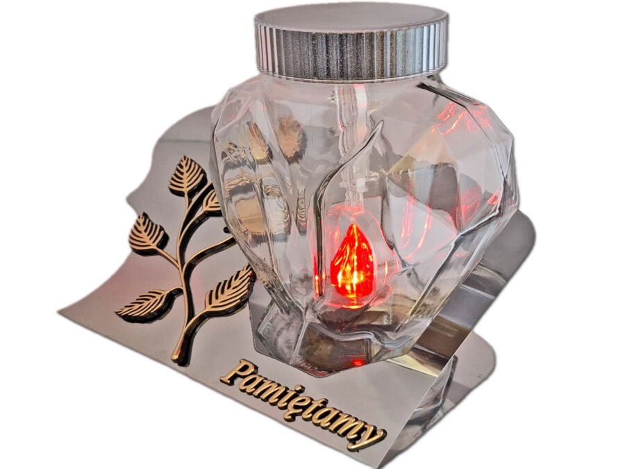 PAMIĘTAMY SOLARNY ZNICZ LAMPION FOTOWOLTAICZNY NA GRÓB SERCE SKOS SREBRO