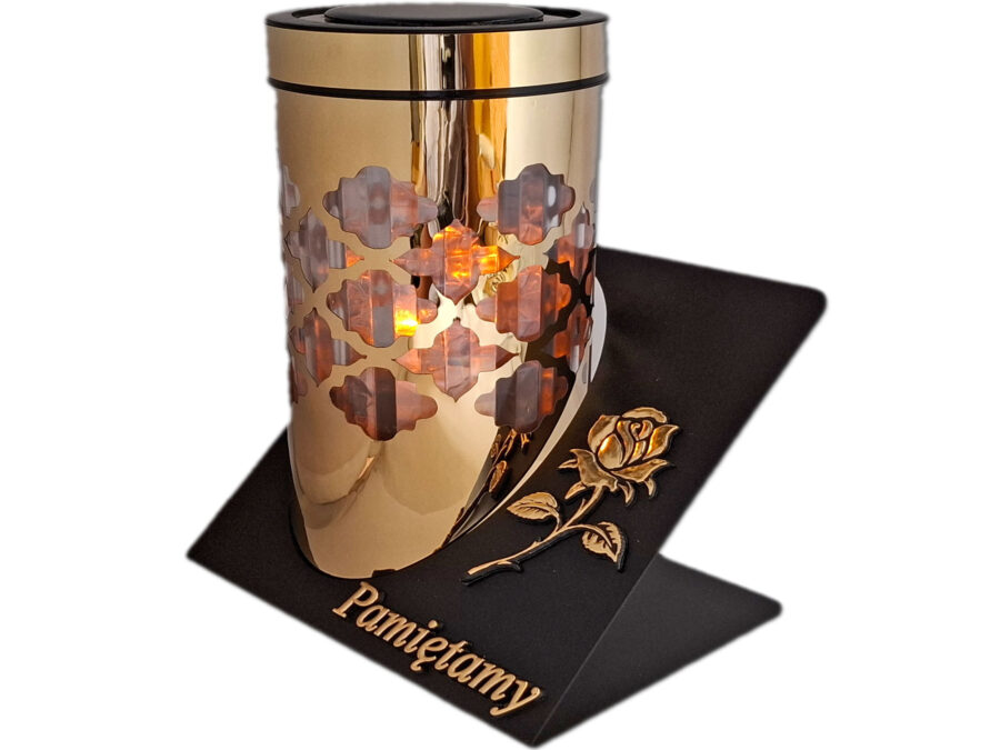 PAMIĘTAMY ZNICZ LAMPION SOLARNY SOLAR FOTOWOLTAICZNY TUBA RÓŻA ZŁOTO