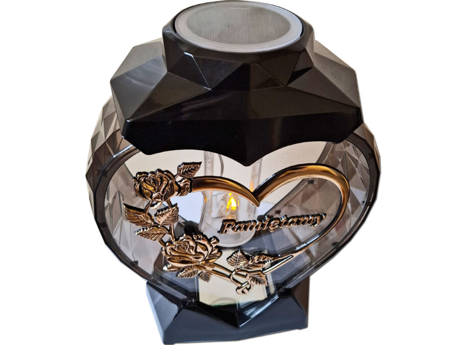 PAMIĘTAMY ZNICZ LAMPION SERCE ZŁOTO NA GRÓB SOLARNY FOTOWOLTAICZNY