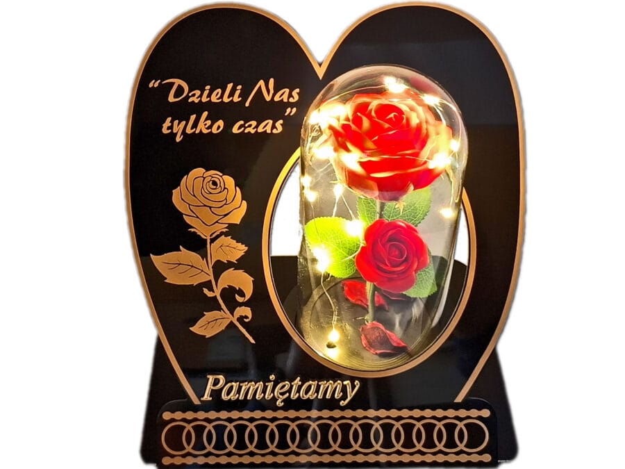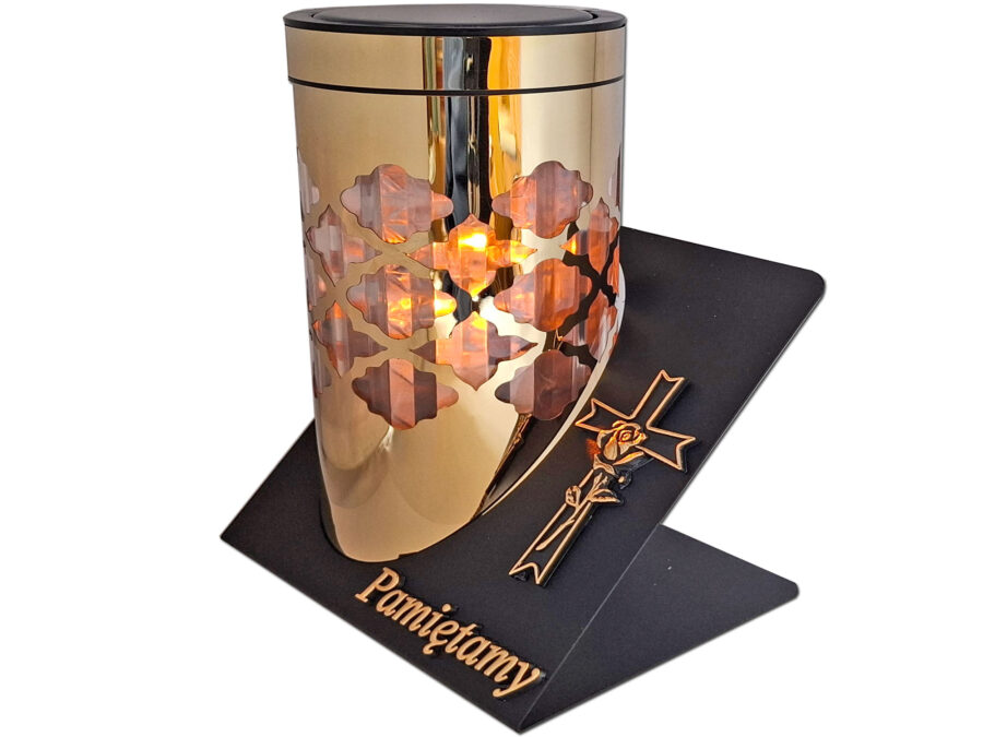 PAMIĘTAMY ZNICZ LAMPION NA GRÓB KOŁO RTN RÓŻA RAM ZŁO+ŚWIECZNIK LED