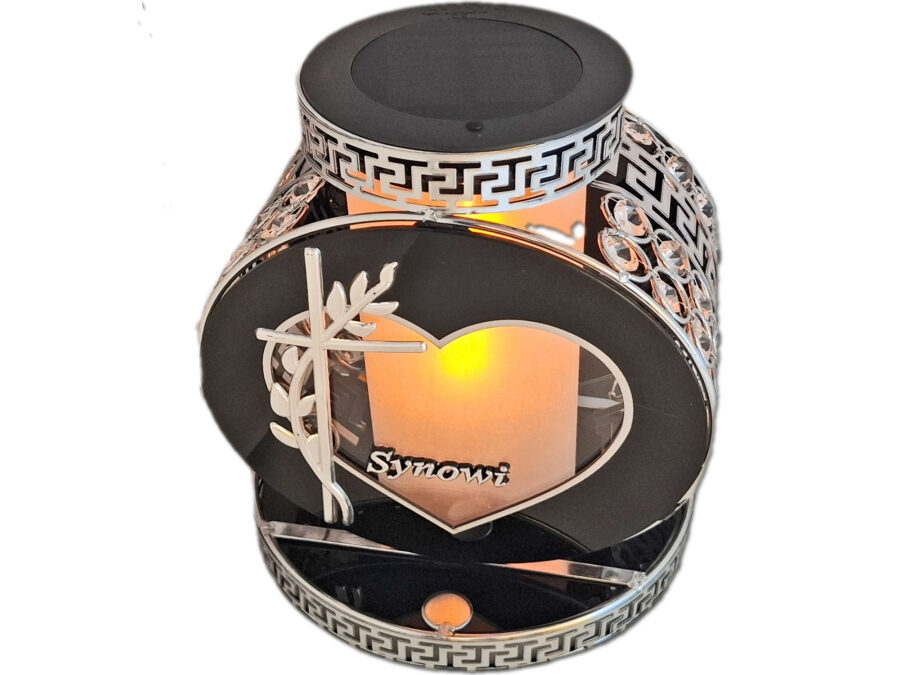 SYN SYNOWI SR ZNICZ LAMPION KOŁO RTN GŁADKI CZARNY+FIGURKA LED