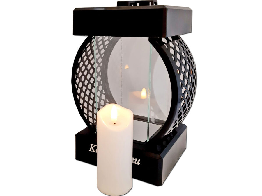 SYN SYNOWI SR ZNICZ LAMPION KOŁO RTN GŁADKI CZARNY+ŚWIECA LED CZARNA