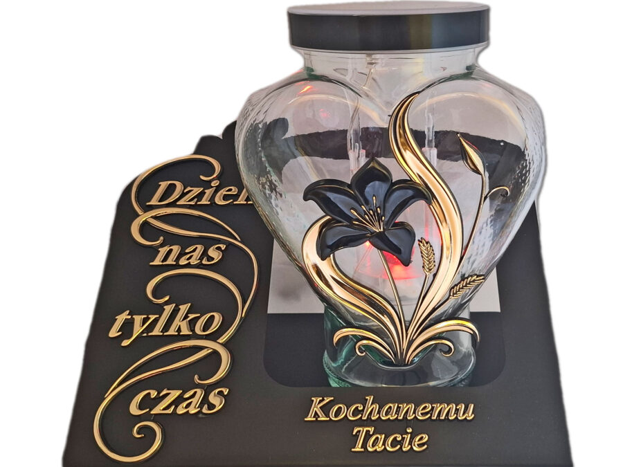 TATA TACIE ZNICZ LAMPION SERCE ZŁOTO NA GRÓB SOLARNY FOTOWOLTAICZNY