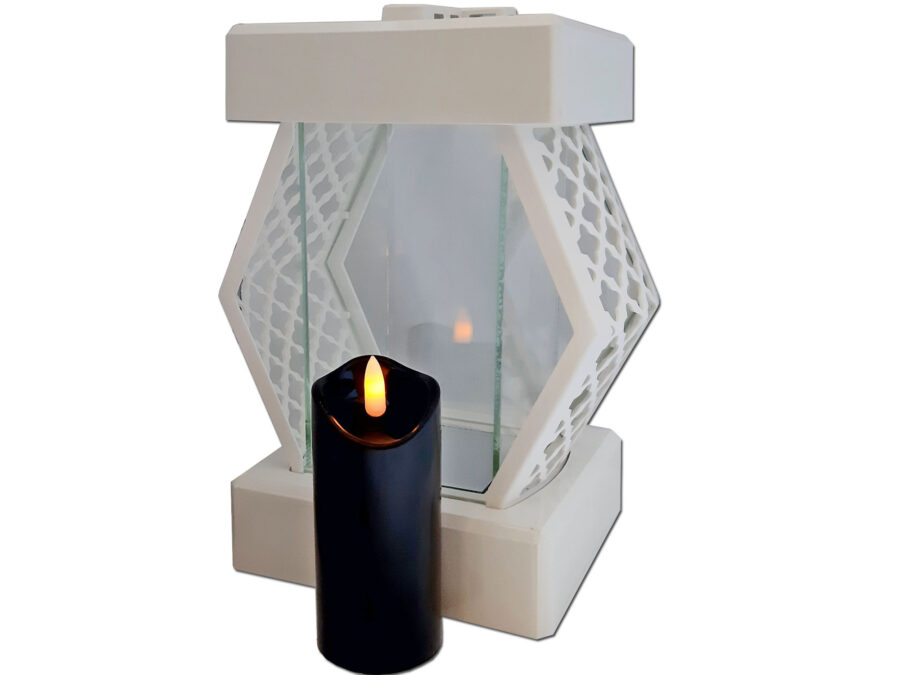 ZNICZ LAMPION LATARENKA NA GRÓB DMT KARO BIAŁY GŁADKI+ŚWIECA LED CZARNA