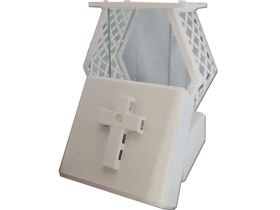 ZNICZ LAMPION LATARENKA NA GRÓB DMT KARO BIAŁY GŁADKI+FIGURKA LED
