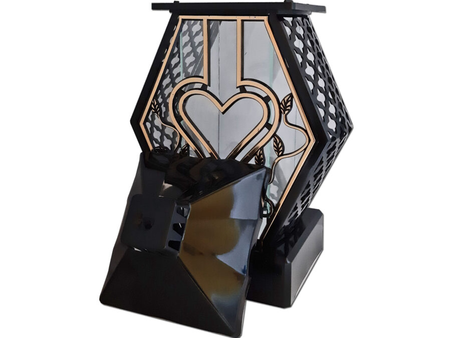 ZNICZ LAMPION NA GRÓB DMT DUŻY RTN RAMA SERCE ZŁOTO+FIGURKA LED