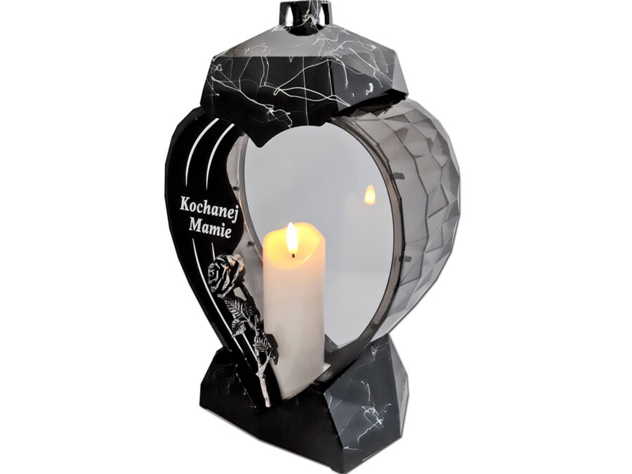 ZNICZ MAMA MAMIE SERCE DEDYKACJA CZARNY MARMUR+ ŚWIECA LED