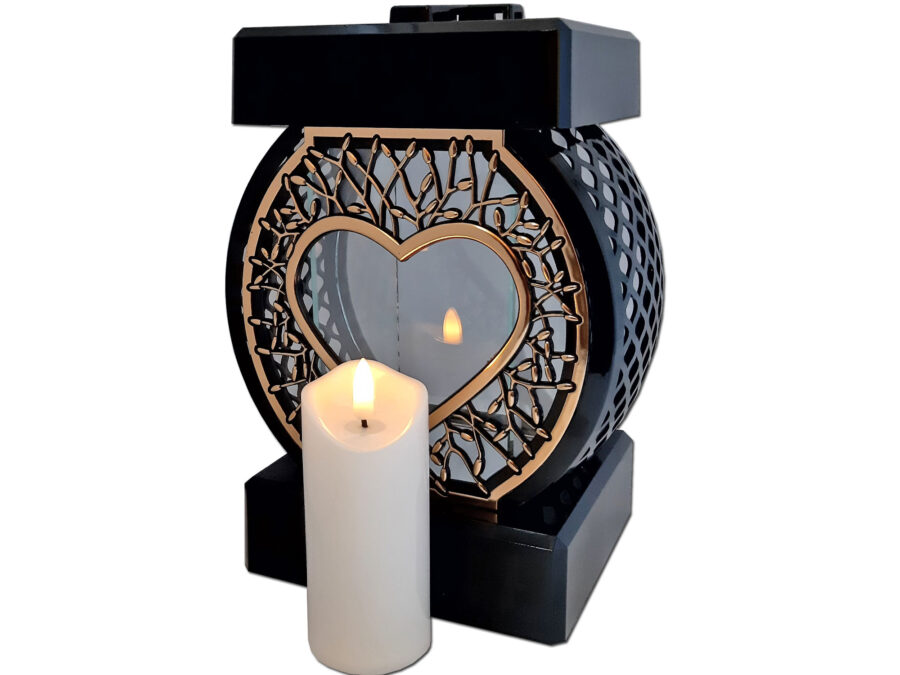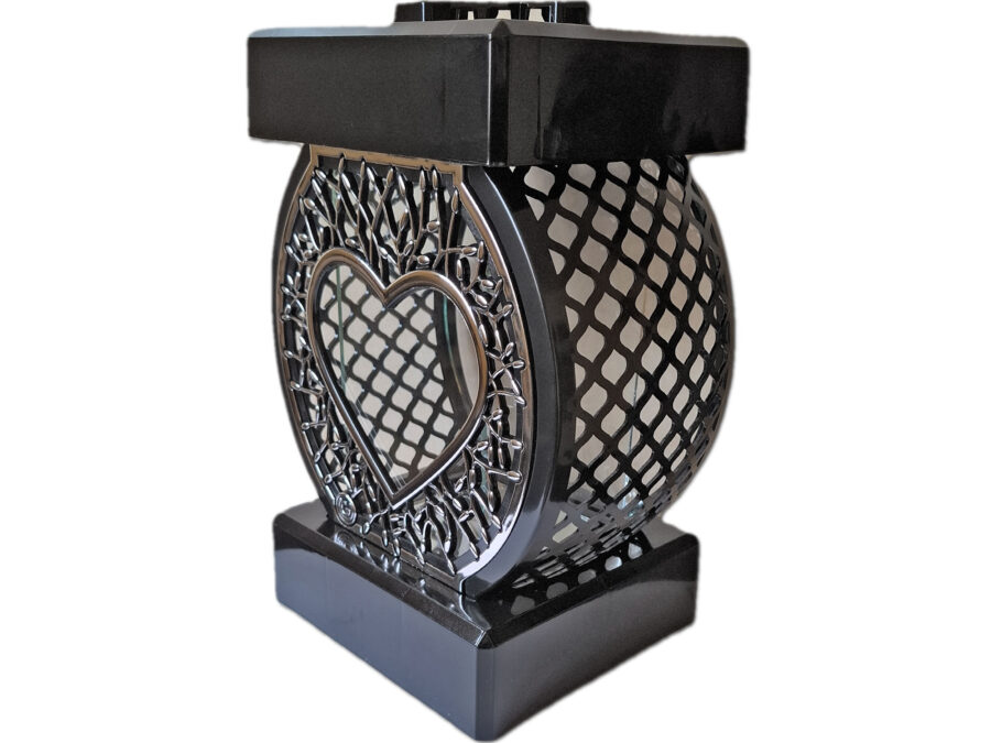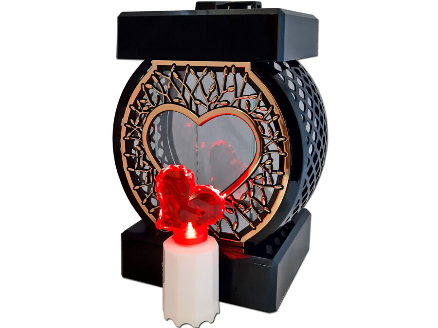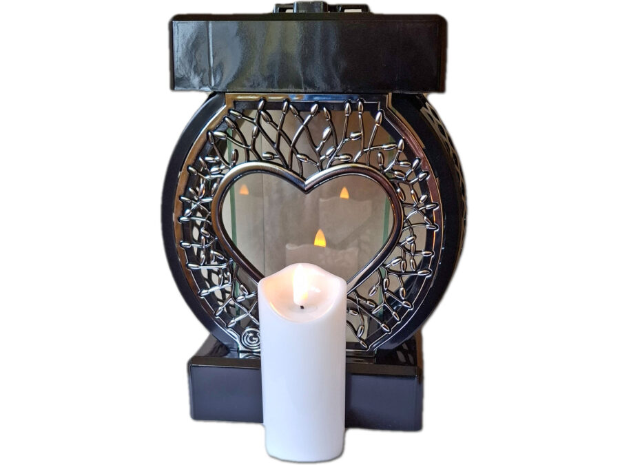ZNICZ ZNICZE LAMPION NA GRÓB KOŁO RTN SERCE RAMA SREBRO+ŚWIECA LED CZARNA