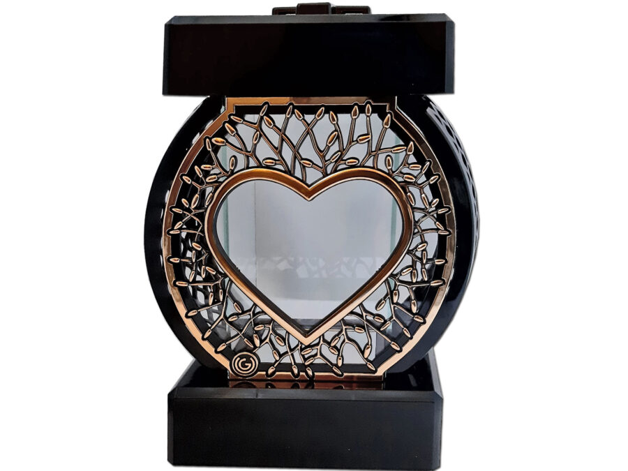 ZNICZ ZNICZE LAMPION NA GRÓB KOŁO RTN SERCE RAMA ZŁOTO+SERCE LED Z BAT