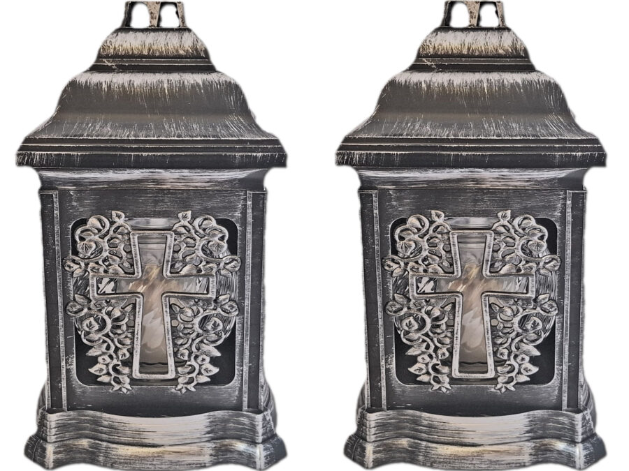 ZNICZ ZNICZE LAMPION NA GRÓB ZESTAW 2 SZTUKI 2070 KRZYŻ SREBRO +WKŁAD