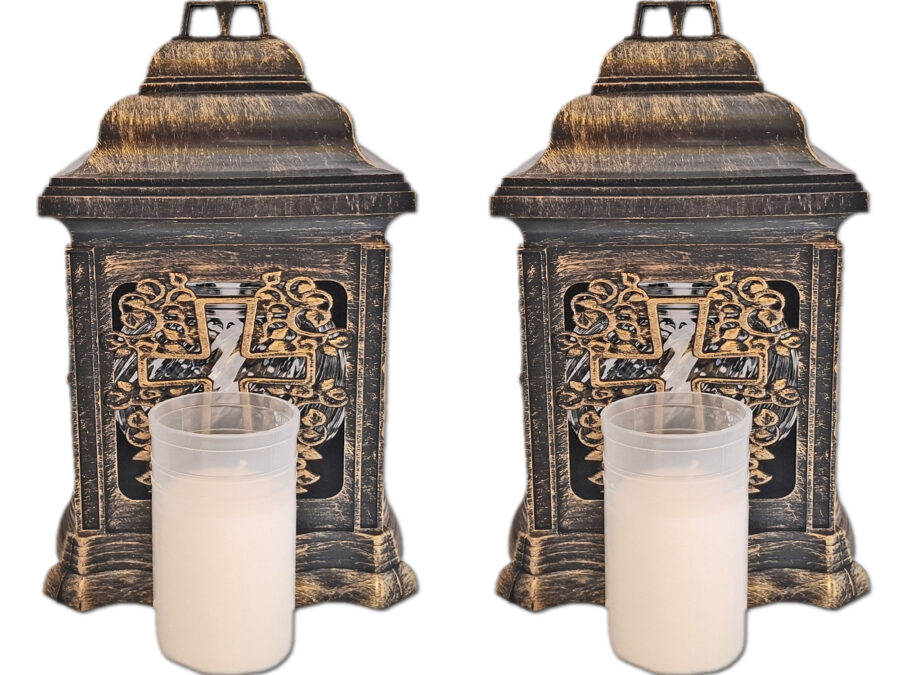 ZNICZ ZNICZE LAMPION NA GRÓB ZESTAW 2 SZTUKI 2070 KRZYŻ ZŁOTO +WKŁAD