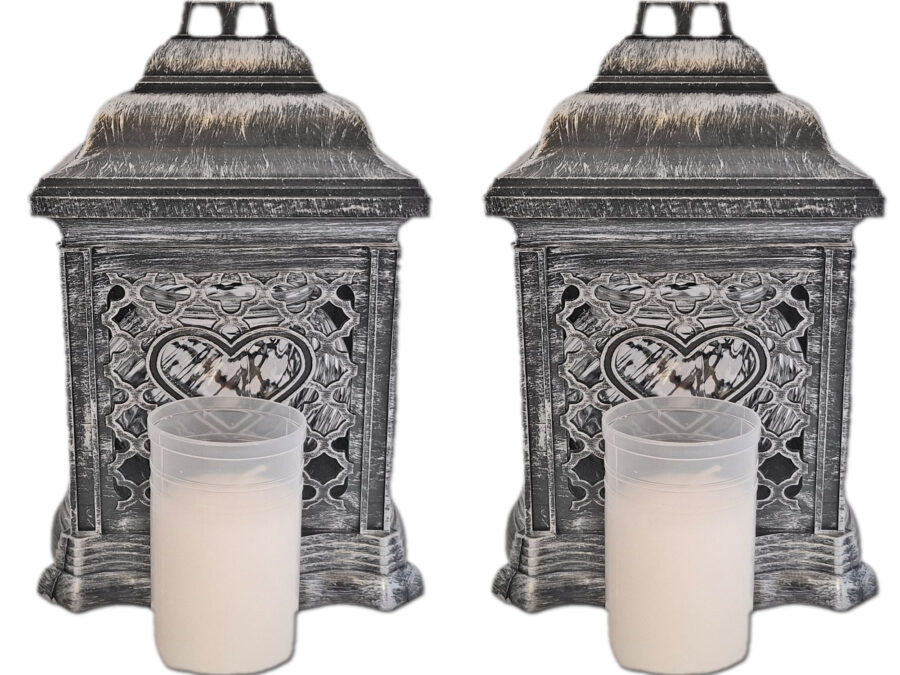 ZNICZ ZNICZE LAMPION NA GRÓB ZESTAW 2 SZTUKI 2070 SERCE SREBRO +WKŁAD
