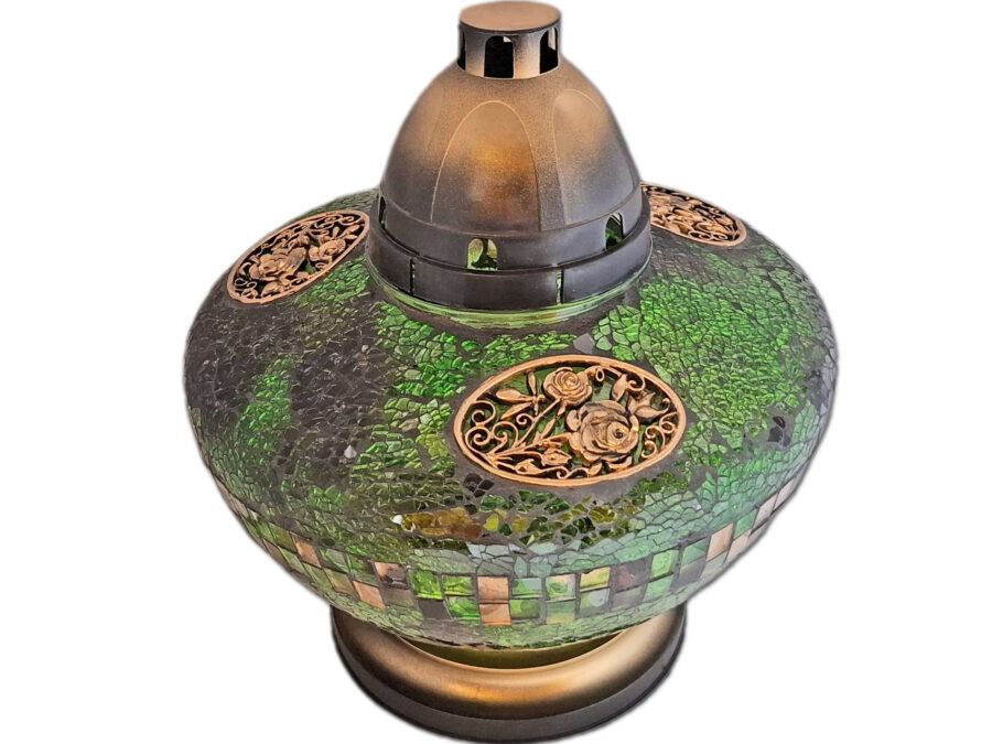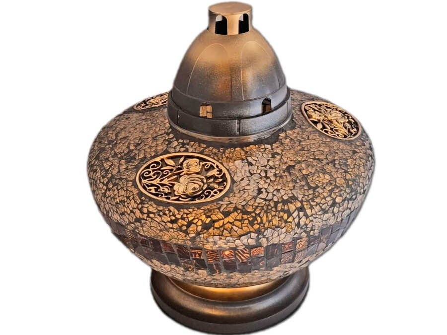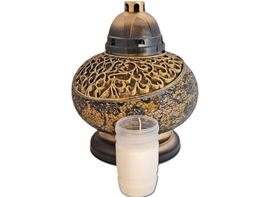 ZNICZ ZNICZE LAMPION NA GRÓB WAZA MOZAIKA ZŁOTO CZARNA+WKŁAD